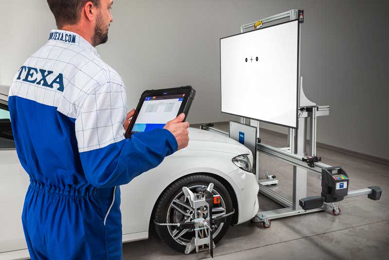 Provádíme kalibraci kamer pomocí nejnovějšího zařízení TEXA RCCS 3, které už nepotřebuje vyměnitelné kalibrační desky (terče). Místo toho využívá softwarové šablony, které se zobrazují na 75″ monitoru s rozlišením 4K. Tento moderní způsob nám poskytuje flexibilitu a neomezuje nás počet pořízených kalibračních desek pro jednotlivé značky a typy vozidel. Vše je řešeno přes online aktualizace diagnostického programu. Prosím, pokud máte další otázky, neváhejte se zeptat!